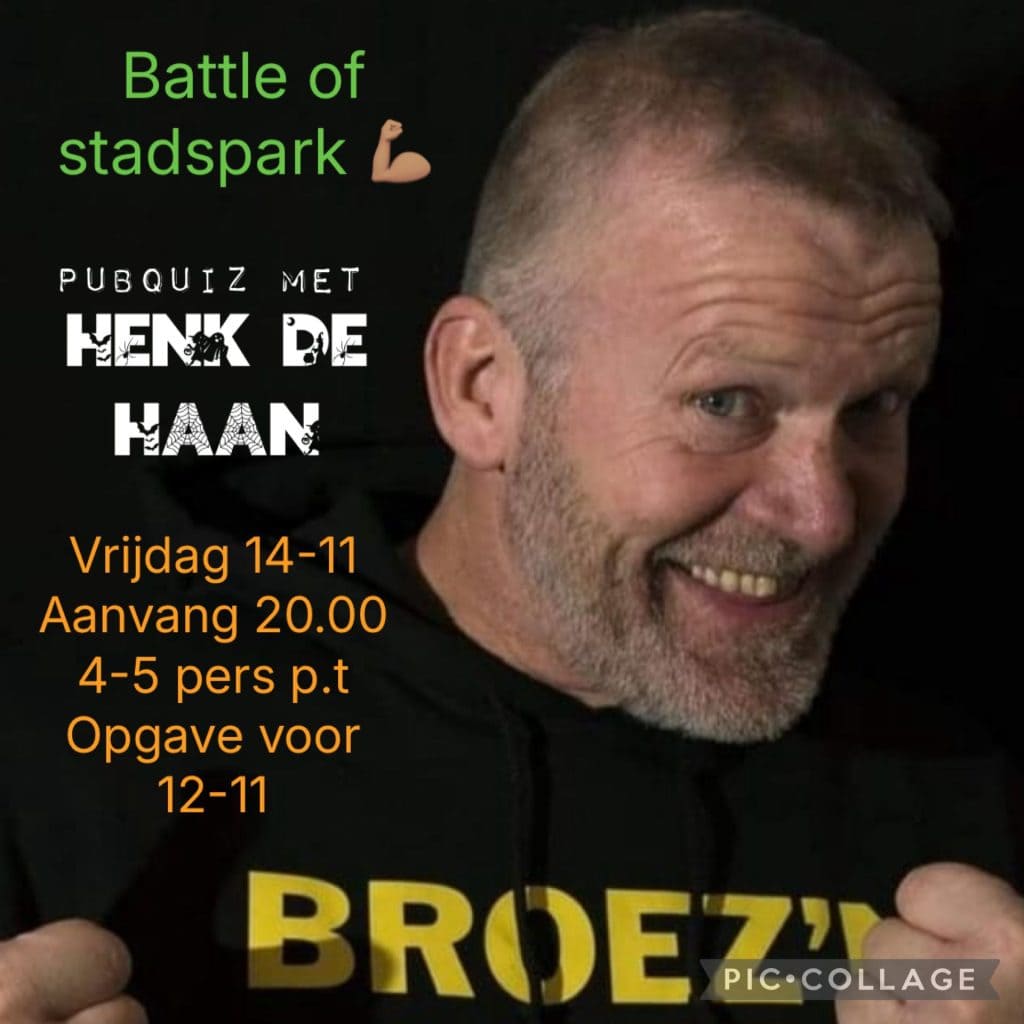 Vrijdag 14 november aanstaande is er weer de niet te overtreffen pubquiz bij jullie geliefde S.C. Stadspark. Onder de bezielende leiding van Henk de Haan kunnen de deelnemende teams weer laten zien wie het meeste weet over nutteloze zaken. Dit alles onder het genot van nuttige versnaperings. De aanvang is om 20.00. Teams van 4 a 5 personen kunnen zich opgeven voor woensdag 12 november bij Debbie Risteruw op 06- 34149415. Wees er op tijd bij want vol=vol. We zien jullie graag op vrijdag de 14e!